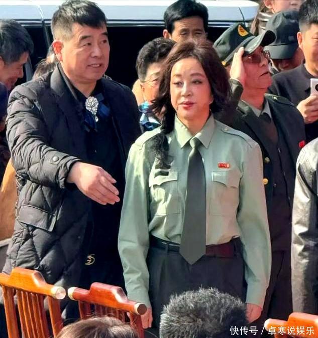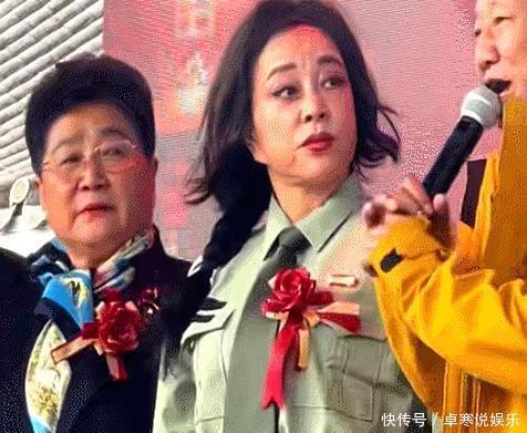 刘晓庆下乡走穴,画厚浓妆戴假发脑门又秃又大,穿女兵服手不停发抖